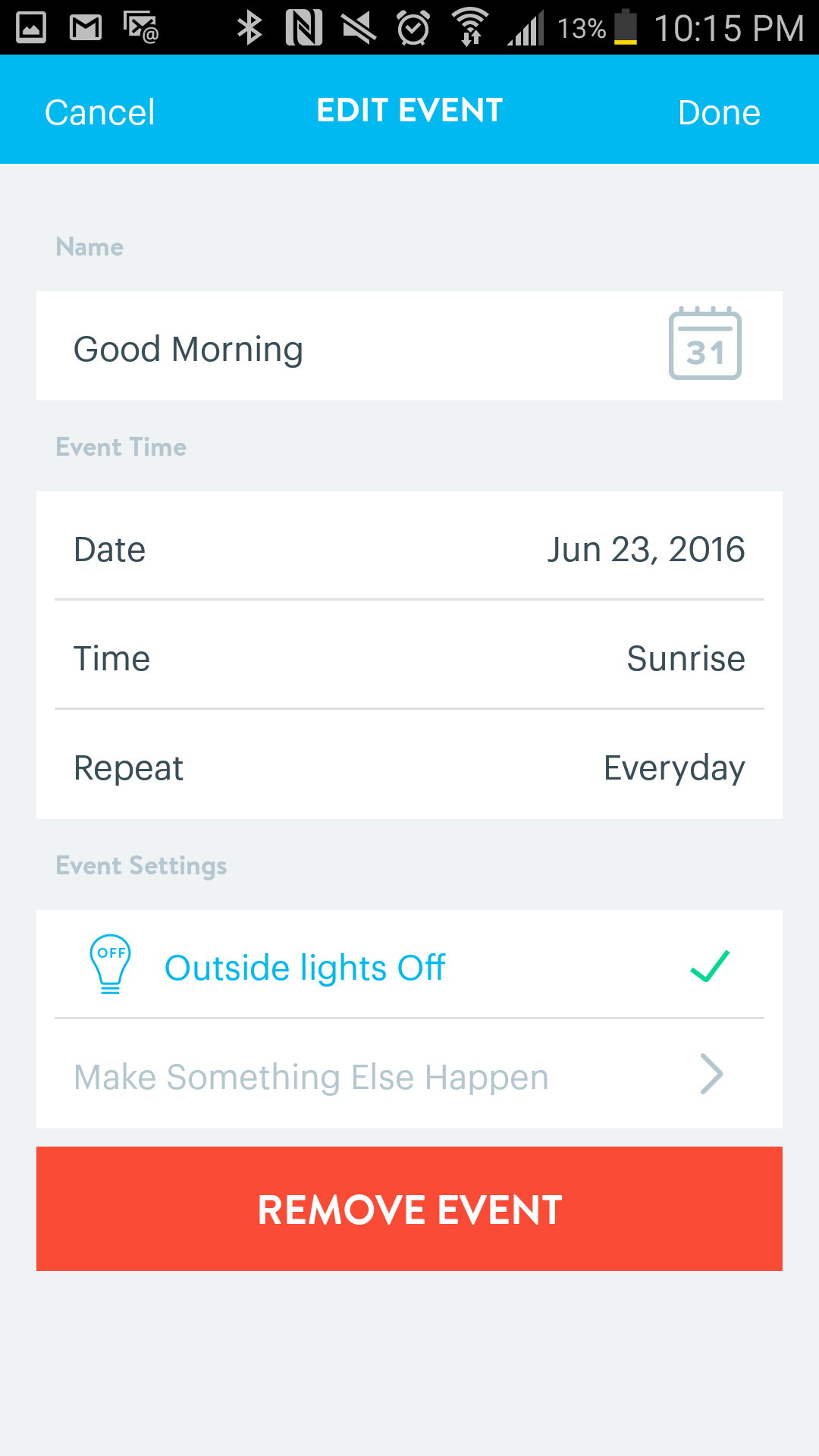 I created one to turn off all the lights. That way with one press of a button, I knew all the lights were off in the house. Keeping your lights off during the day always helps lower the energy bill. That change in your pocket can add up to more smart devices.